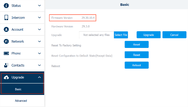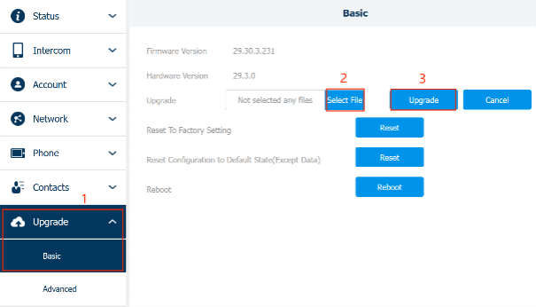 2. Navigate to Upgrade > Basic. Click on Select File to import the firmware from the local driver and then Upgrade.