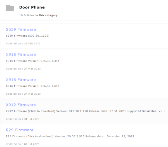 Click on the desired category to display all the latest firmware. Here, we take Door Phone for instance.
