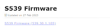 S539 Firmware (Click to download) Version: 539.30.10.6 Release Date: Oct 09, 2023