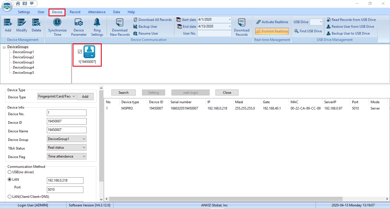 >> Step 1: Connect Anviz device to PC via TCP/ IP or Wi-Fi. (How to connect to CrossChex)