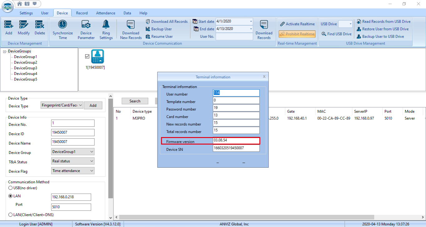 Situation 1: Anviz device is connected to the CrossChex but the admin password is forgotten.