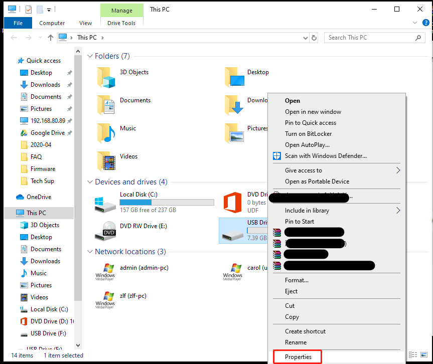 2. FAT file system (Right-click USB Drive and click ‘Properties’ to check the Flash Drive file system.)