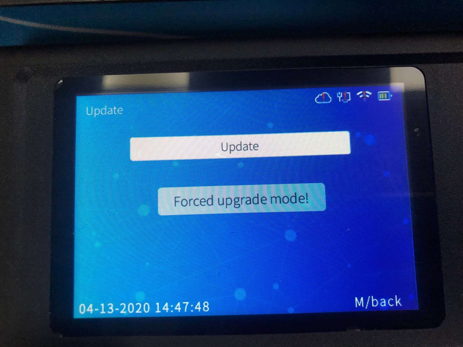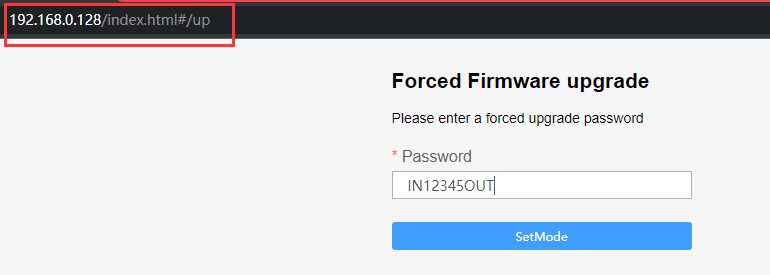 >> Step 3. Press ‘IN12345OUT’ in the keypad, then the device will change to forced upgrade mode.