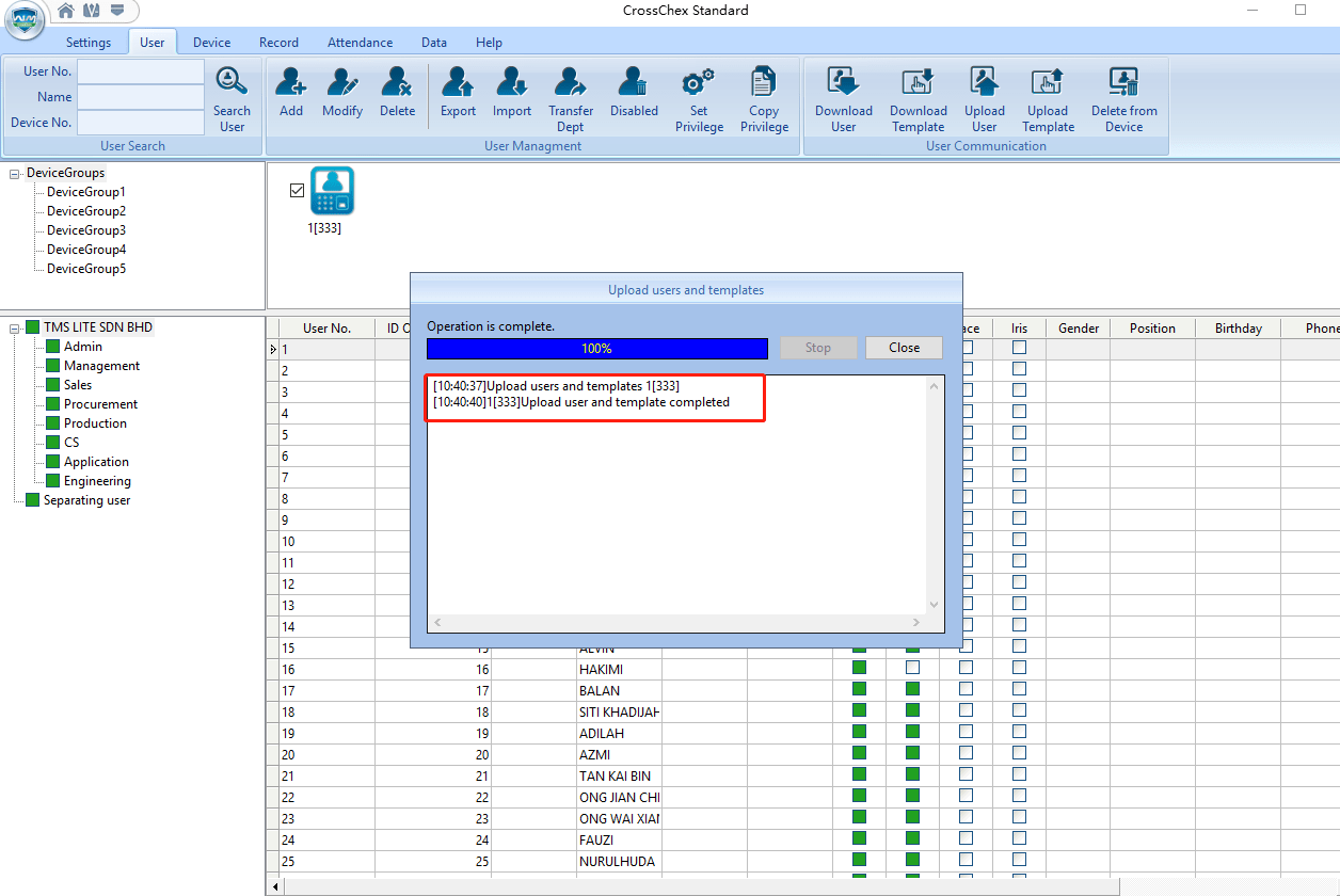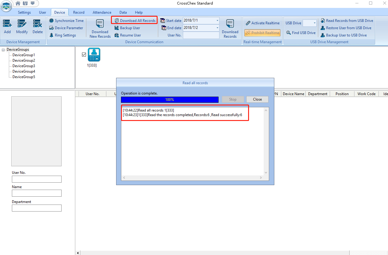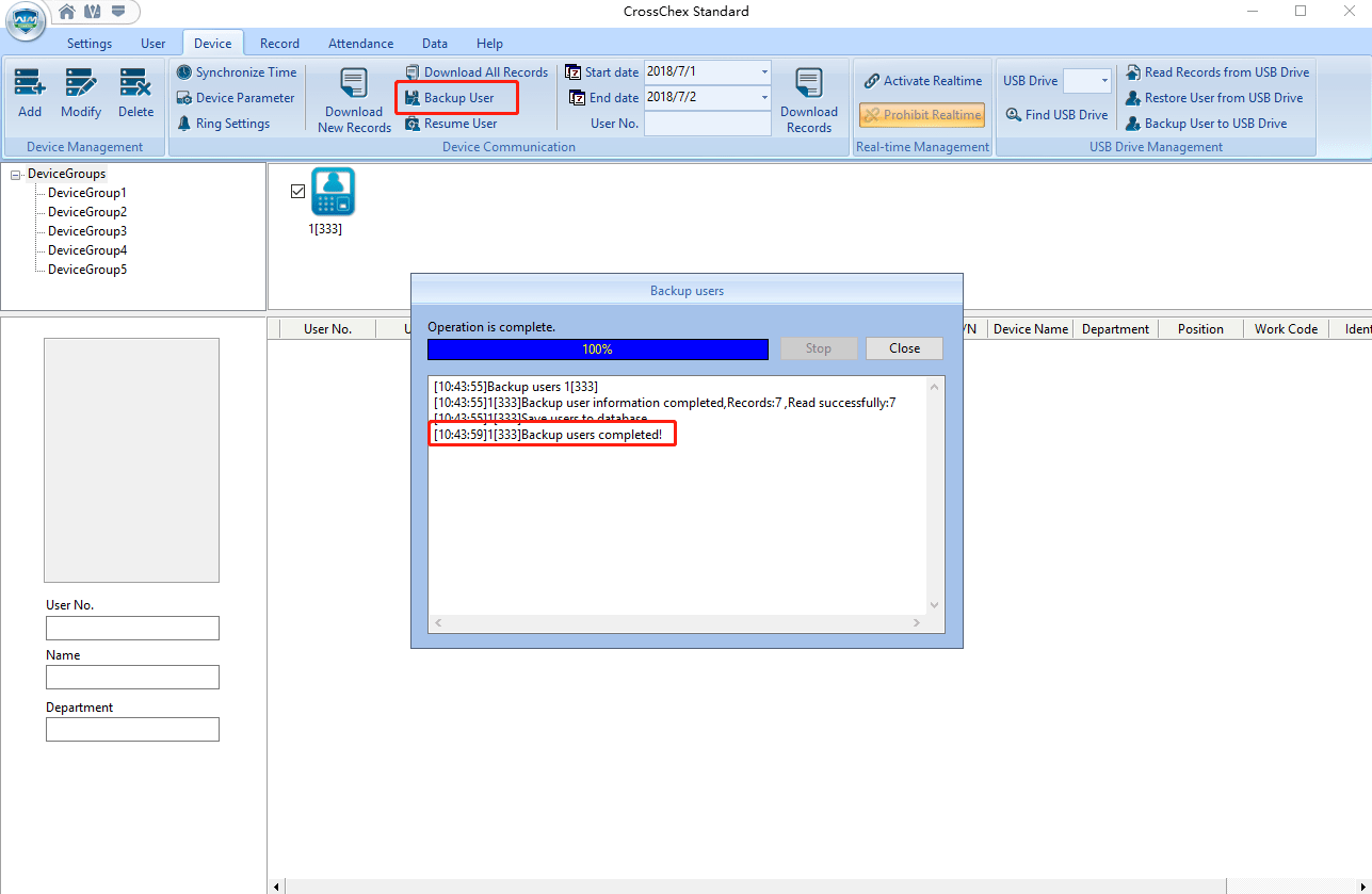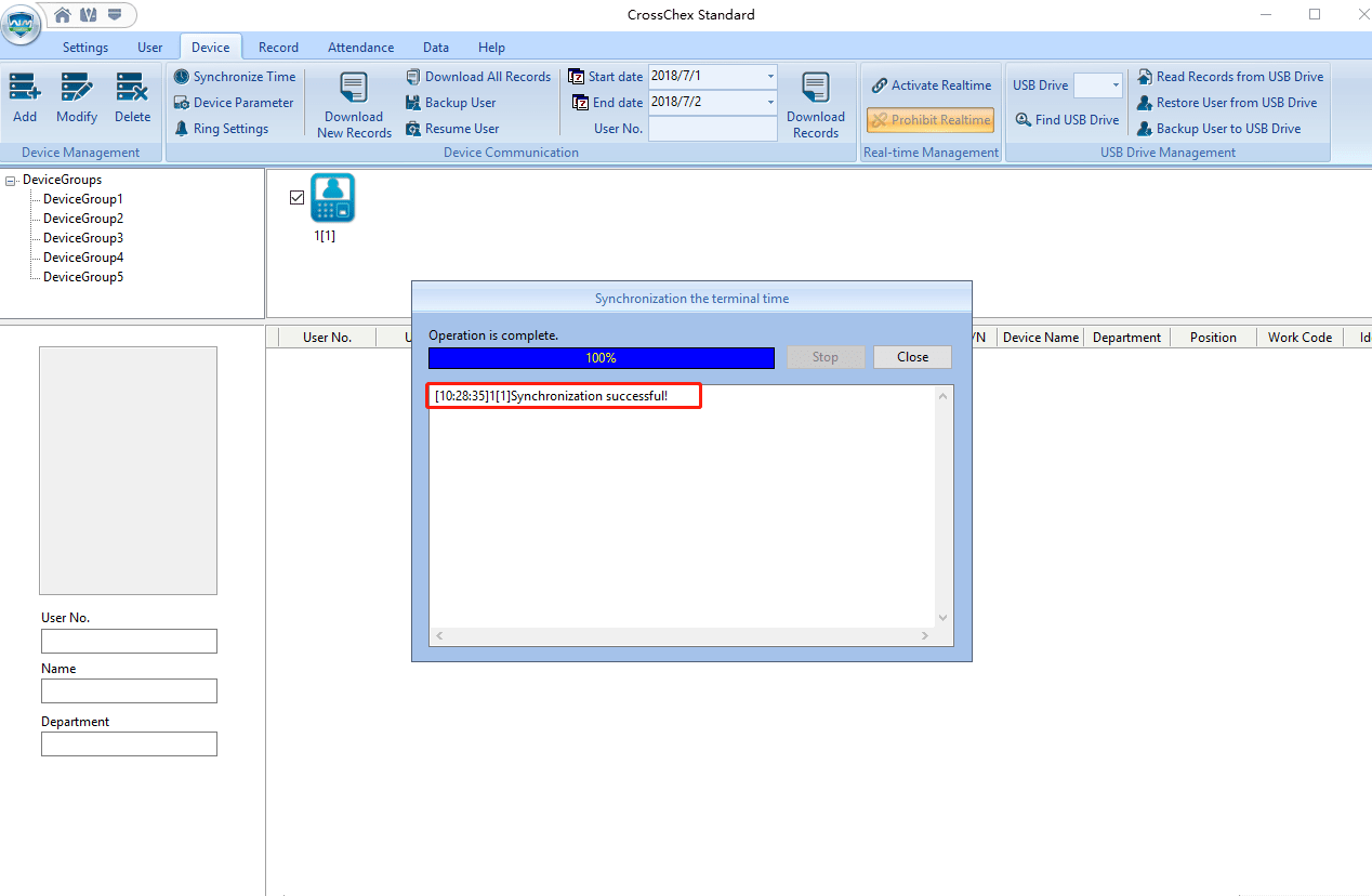 Click the ‘Synchronize time’ to test and make sure the device and CrossChex are connected successfully.