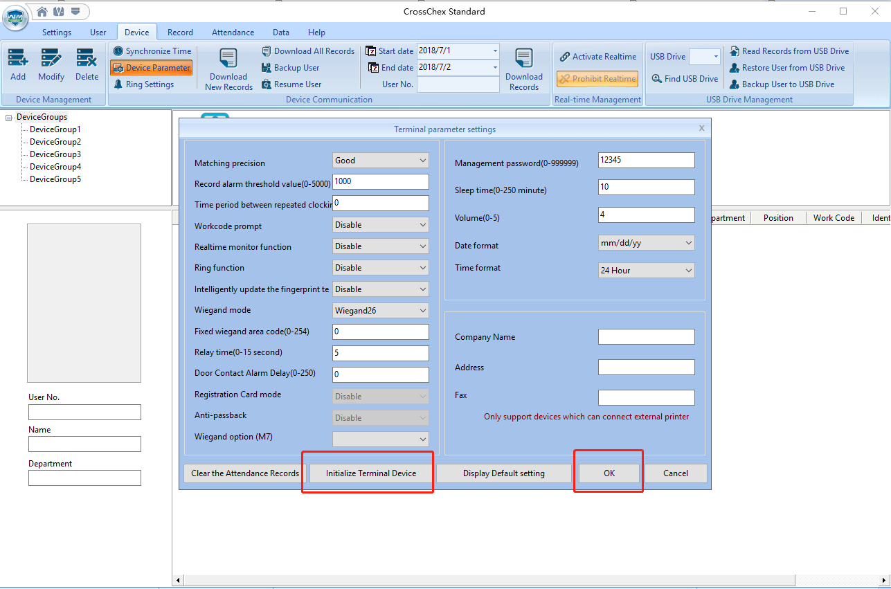 Step 3.2.2: Initialize the Anviz Device (********Warning! All Data Will Be Removed! **********)