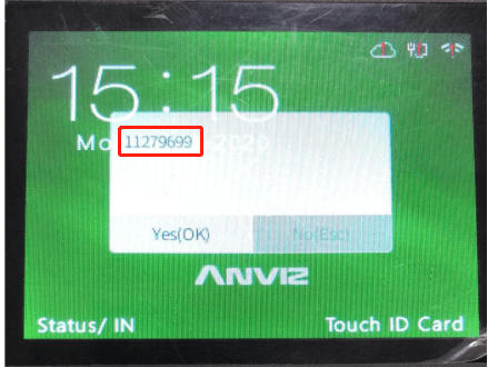 Input ‘000015’ and press ‘OK’. A few random numbers will pop up on the screen. For security reasons, please send those numbers and the device serial number to the Anviz support team (support@anviz.com). We will provide technical support after receiving the numbers. (Please DO NOT turn off or restart the device before we provide technical support.)