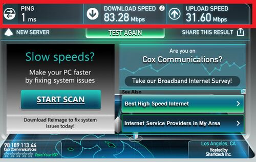 1. To check your Internet connection please go to http://www.speedtest.net/