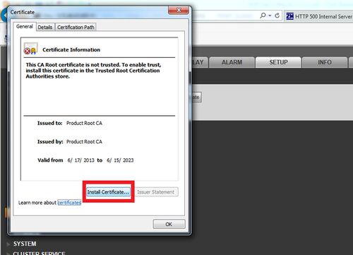 When I login via HTTPS, a dialogue says the certificate is not trusted