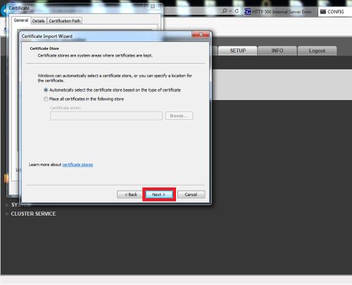 8. Now click next, unless there is a directory that you want to store the certificate in on your client computer