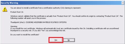 11. After the security certificate is installed go to your HTTPS page and there should be a security promp, click “Yes”.