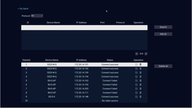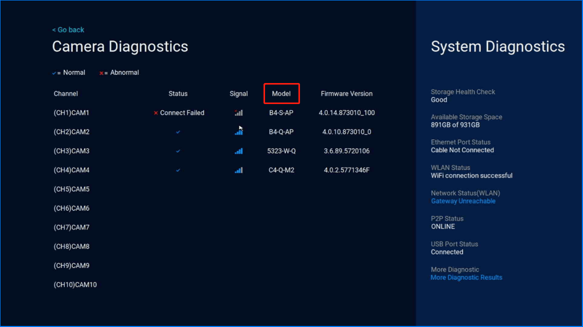 2. After confirm camera work, please right click NVR mouse choose Diagnostics of cameras status, if cameras shows Connetcd Failed, pleasea go to Camera setup page, delete this camera