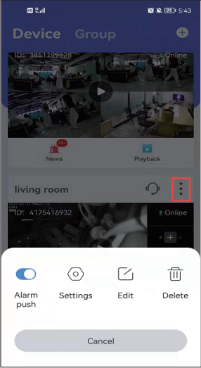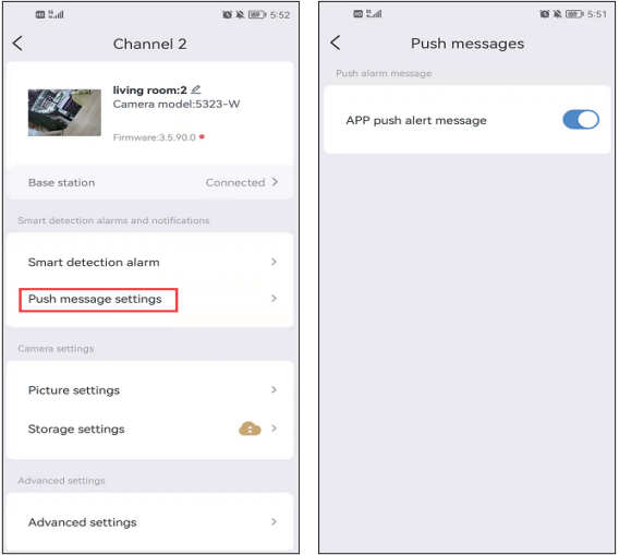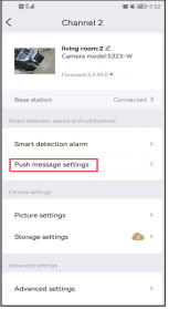 2) Into each camera setting→ click setup icon→ Push message settings, turn on APP push alert message.