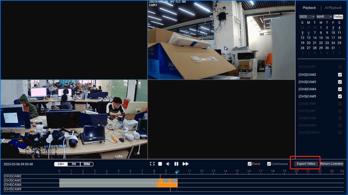 2.Insert a format FAT32 Micro SD card to backup videos, which is easy and convenient in the video playback interface. Select the channel window that needs to be backed up-> click the backup Video button in the lower right corner-> select the export folder-> click export.