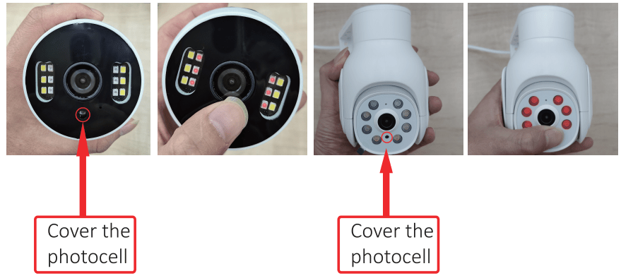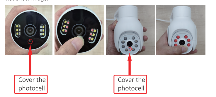 For plug-in camera: Cover camera photocell and check there is red light or not, if yes, camera should be no problem, if not, camera should be no power, you can exchange a power adapter to check again. If camera indicator doesn’t work or no red light indication, the camera has experienced a malfunction. In this case, please contact us for after-sale service.