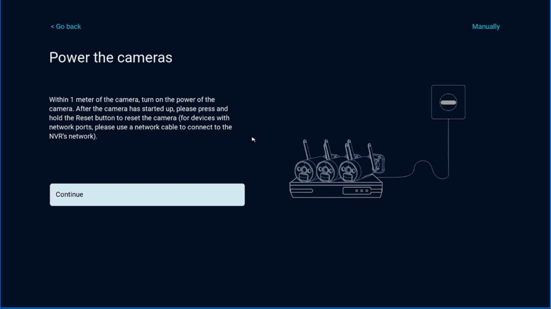 If it is plug-in camera: connect camera with power adapter, and put it close to NVR