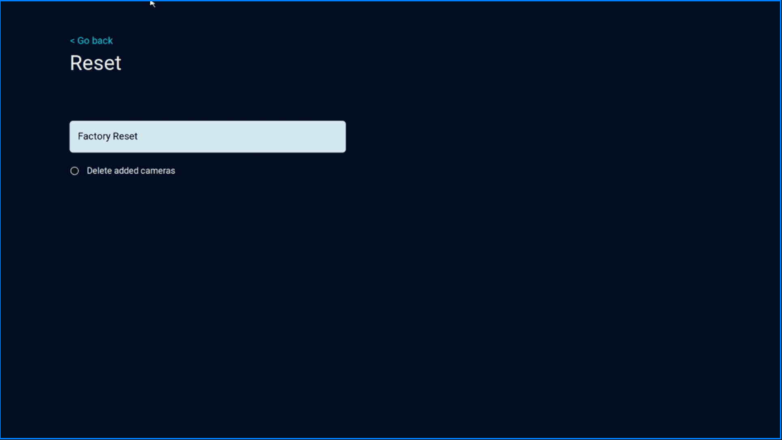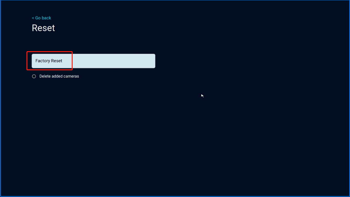 Right click the mouse>System setup>Reset, do not delete added cameras