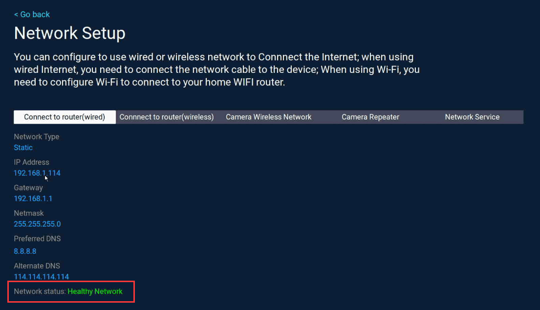 Please notes only when Network status shows Healthy Network, which means network connection is no problem