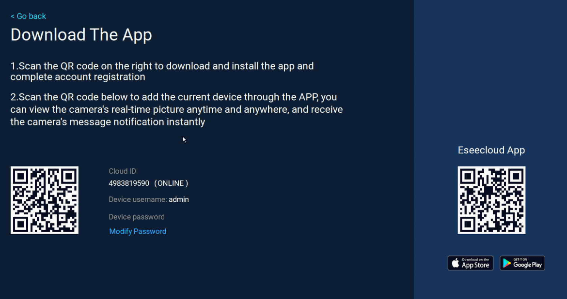 1. Download EseeCloud APP from Google Play or APP store, or scan below right side QR code