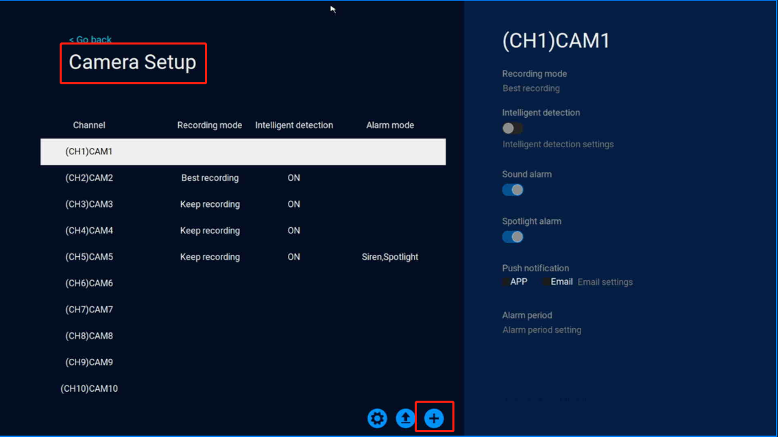 2) Go to each camera setting>click setup icon> Push message settings, turn on APP push alert message. or On NVR Camera setup page enable Push notification: APP