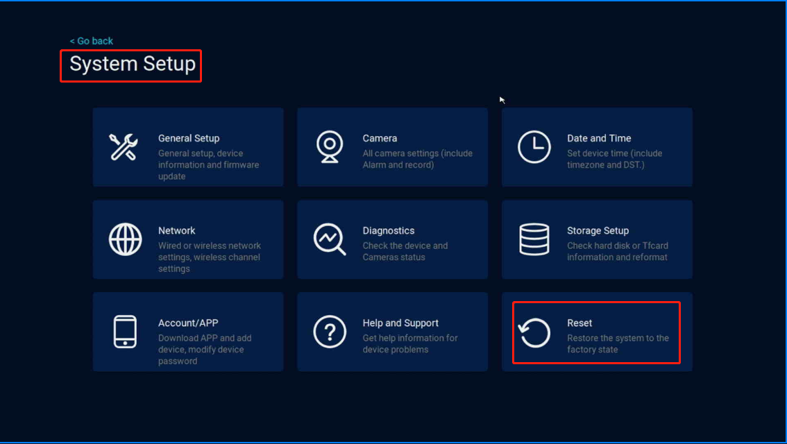 Method 2.If reset button does not work, please go to System Setup,select Reset,reset