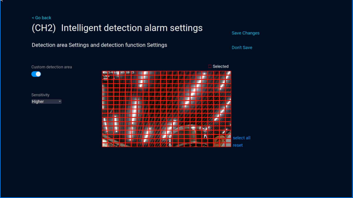 A. Custom detection area: set the motion detection area, if you get many motion detection notification, please narrow the area. Default select all area, show red color.