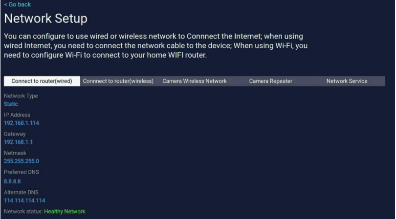 1. Connect to router (wired): connect the system with router by ethernet cable , and check Network Status