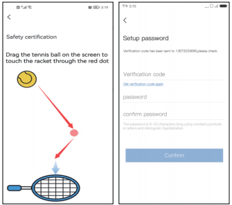 2.4 You’ll receive a verification code, input the verification code and set up your own password, then click “Confirm” to complete.