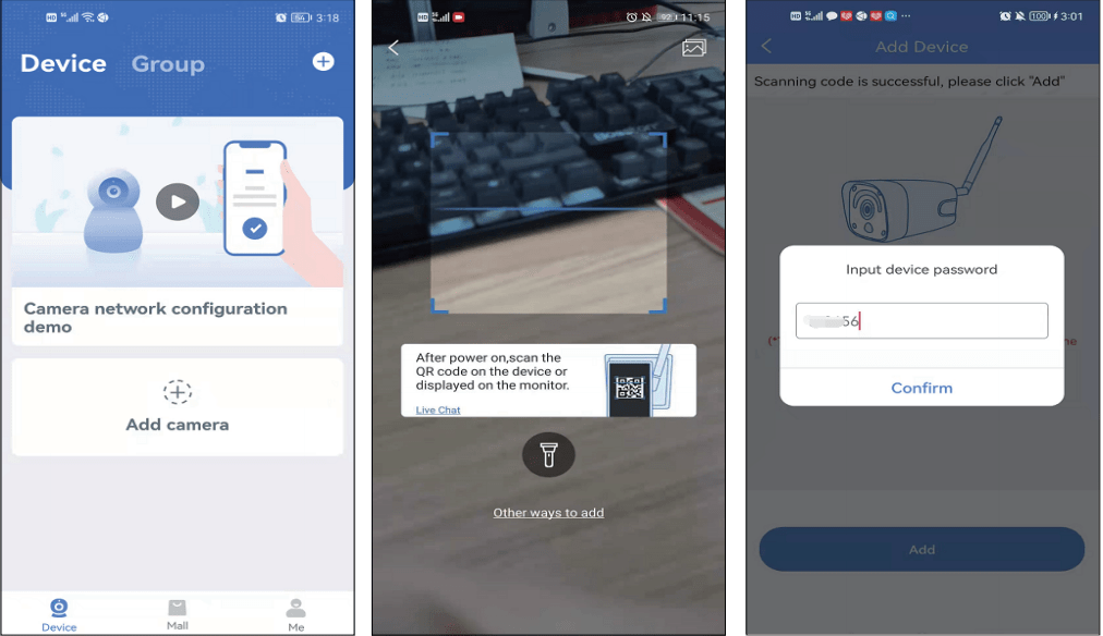 2. Right click mouse choose System Setup— Account/APP, Open Eseecloud APP, click “+” scan the left QR code to add or click Other ways to add, input cloud ID and NVR password, click Confirm