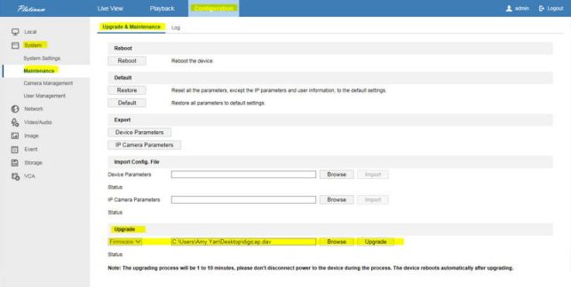 3. Or you can upgrade the firmware remotely by login to the device by web browser. configuration-system-maintenance.