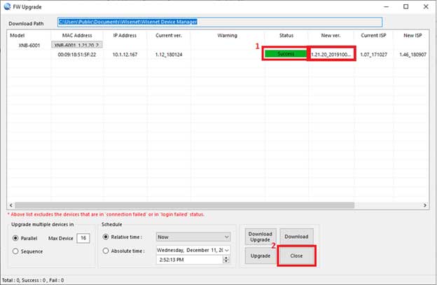 Note: You can also click the ‘Download’ button to have Wisenet Device Manager download the necessary firmware files.