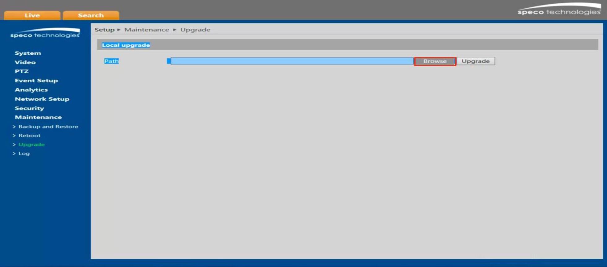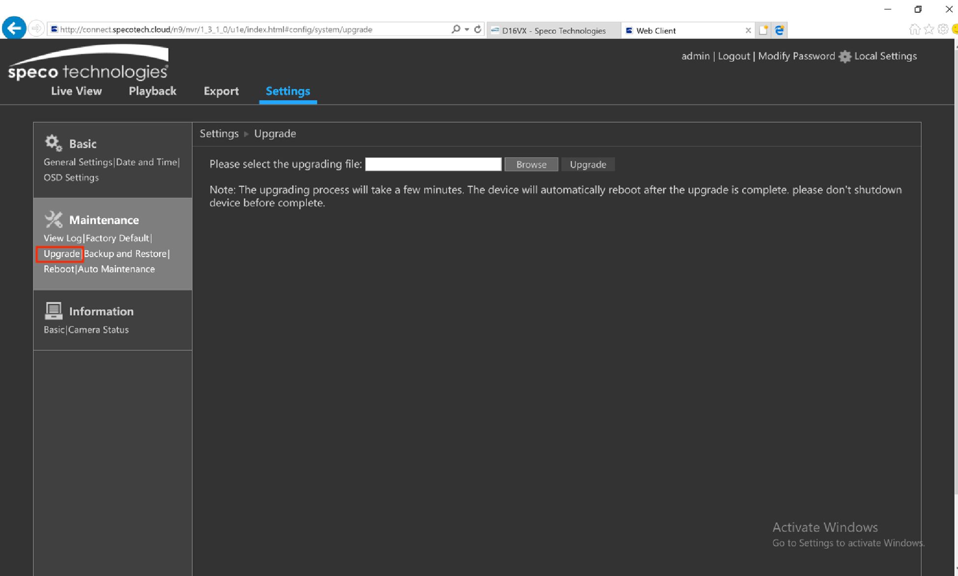 B http://connect.specotech.doud/n9/nvr/1 3 1 0/u1e/index.html«config/system/upgrade