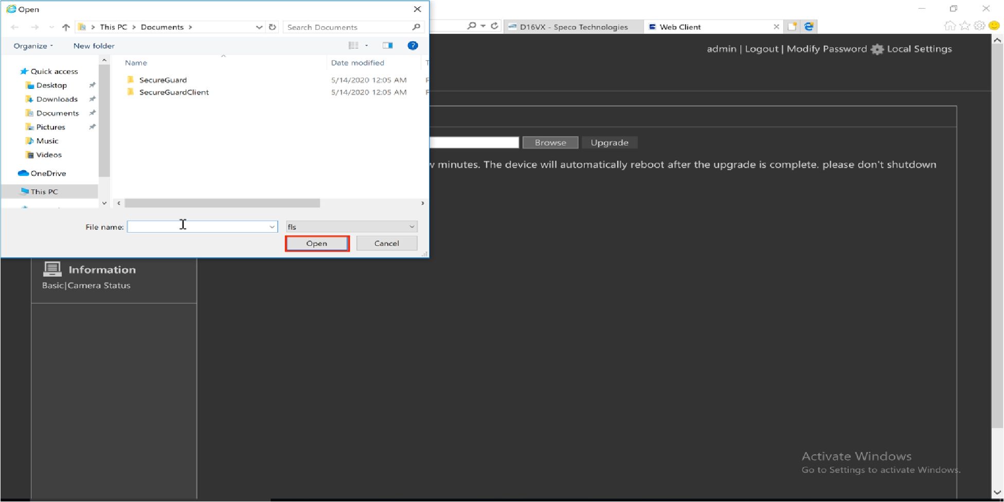 11) Browse your computer for the upgrade file, then click “open” when you find the file as shown below.
