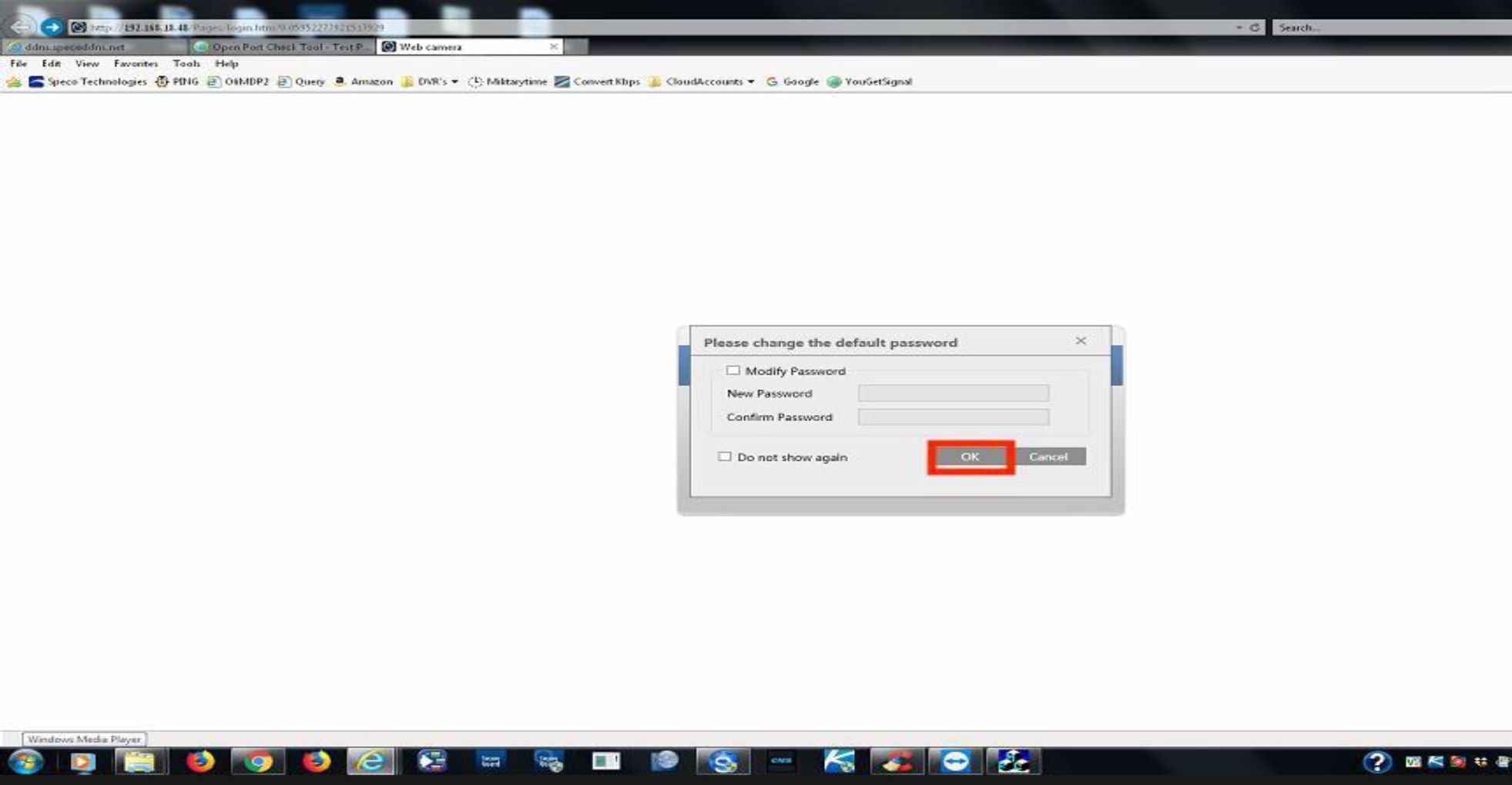 4) When you go to login it will ask you to change the default password. You can just click “ok” if you do not want to change the password.