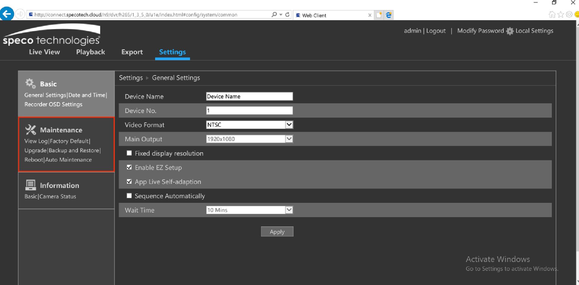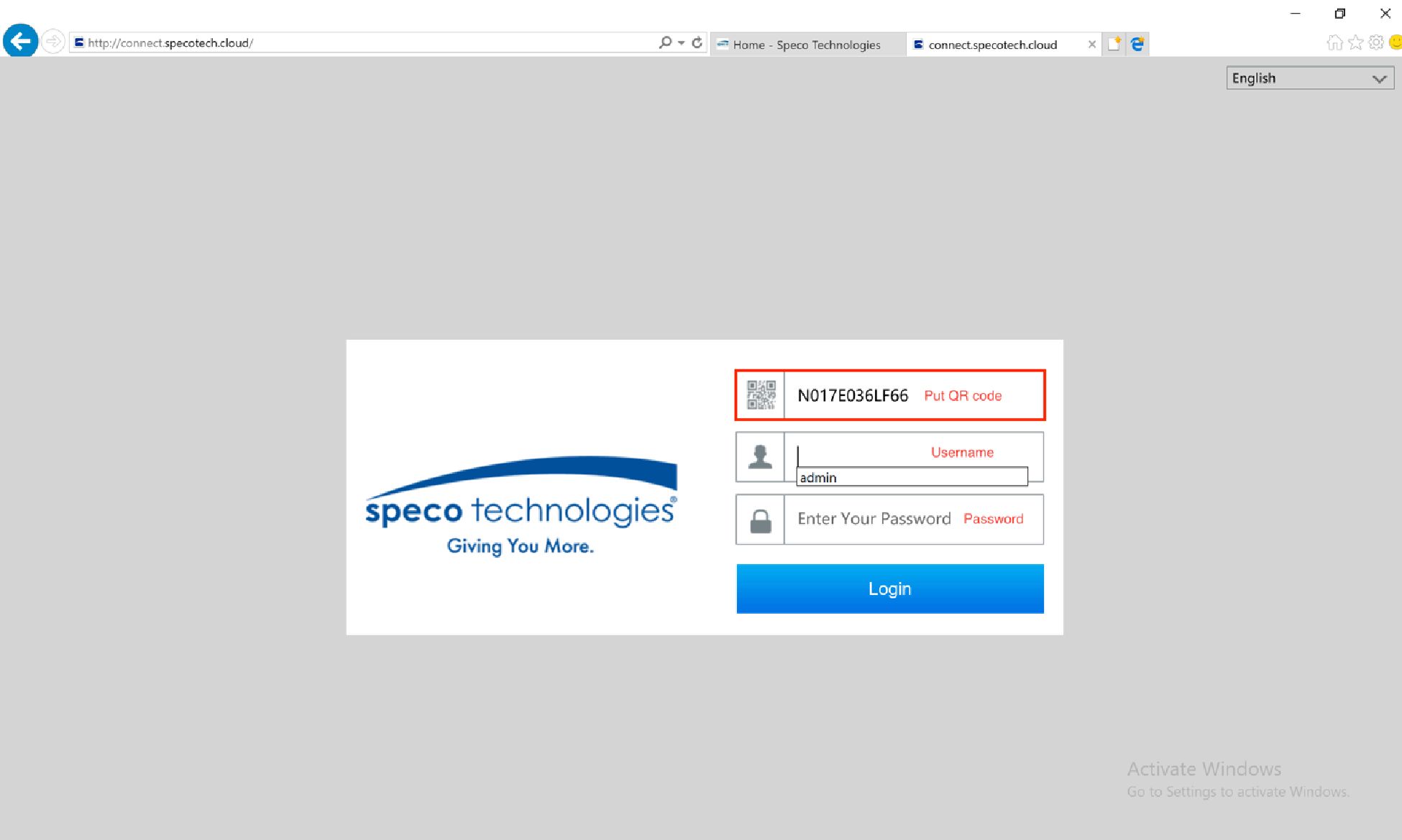 - After downloading the current firmware go to http://conntect.specotech.cloud and log into your recorder with the QR code, username and password. You will see the following image.