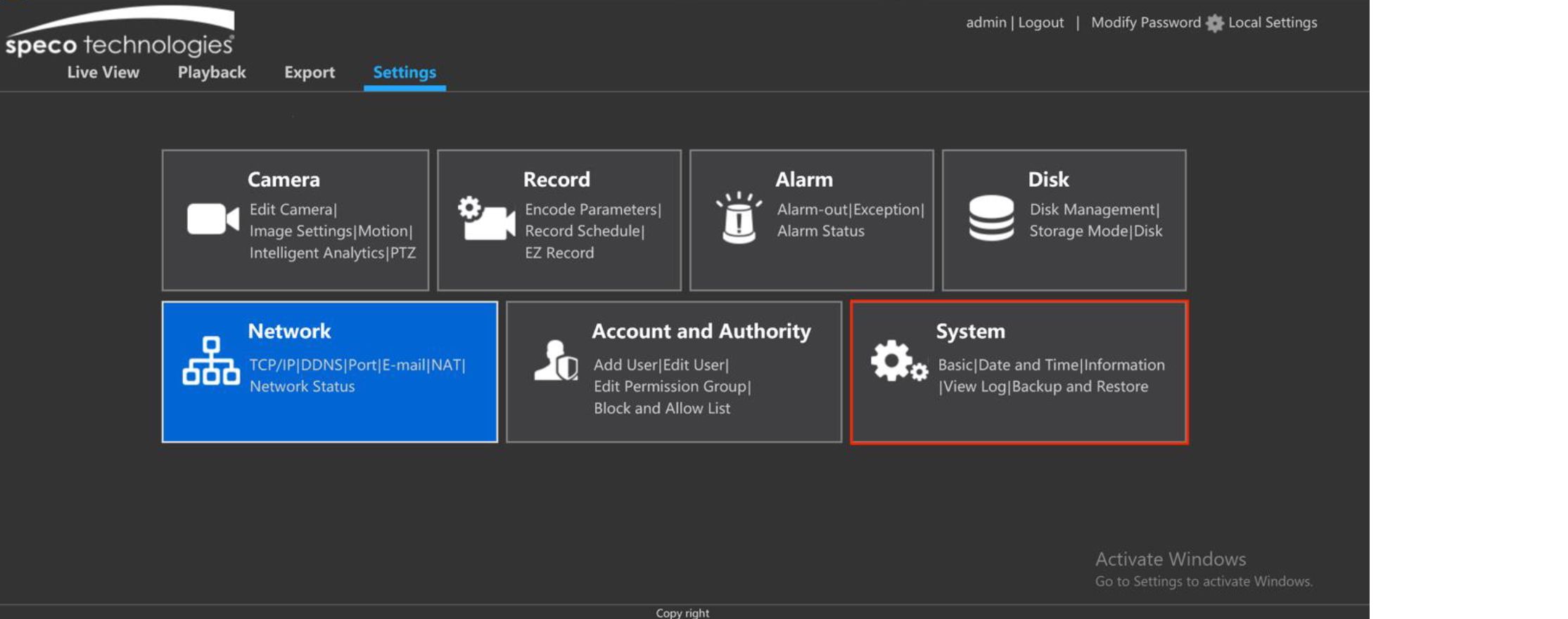 EZ Wizards – For ease of use and setup Camera: quickly discover and install all Speco IP cameras Setup: for quick setup of general settings Network: network