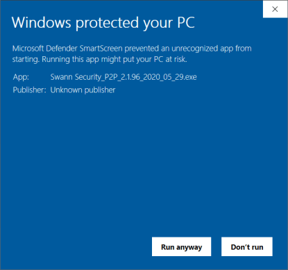 If this prompt appears, click More Info then Run Anyway then continue with the installation.