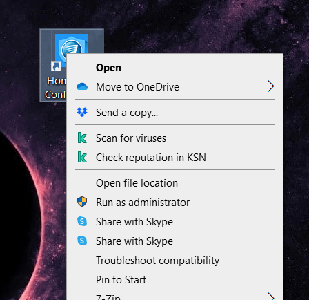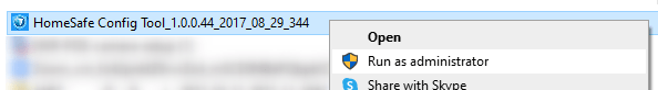 Next, locate the HomeSafe Config Tool icon on the desktop. Open or right-click on the icon and select Run as administrator.