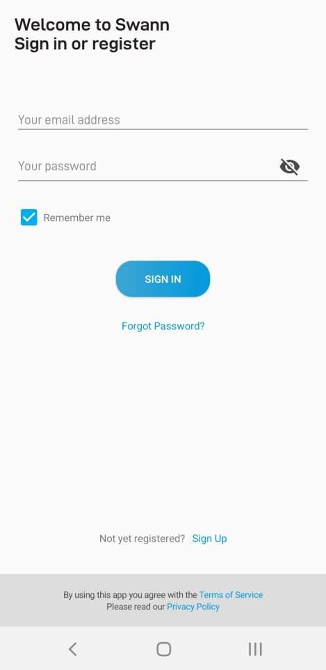 Open Swann Security then tap Forgot Password? below the Sign In button. |