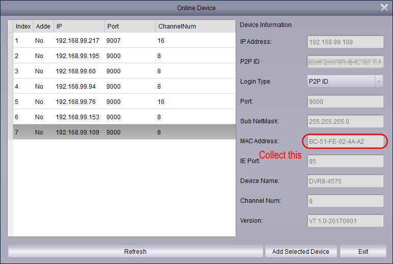 Once your DVR shows on the list, click it once to see the MAC Address at the right side.