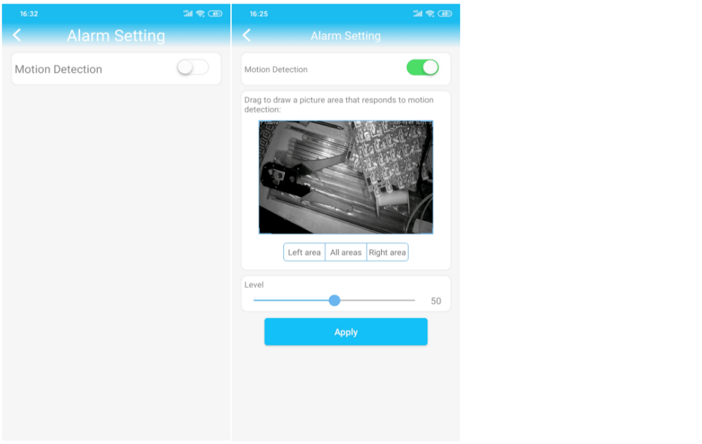 Select On to indicate that the device with microphone function. When the surrounding sound is greater than the intensity of the device check sound, trigger an alarm, click to adjust the sound alarm, you can adjust the sound alarm sensitivity