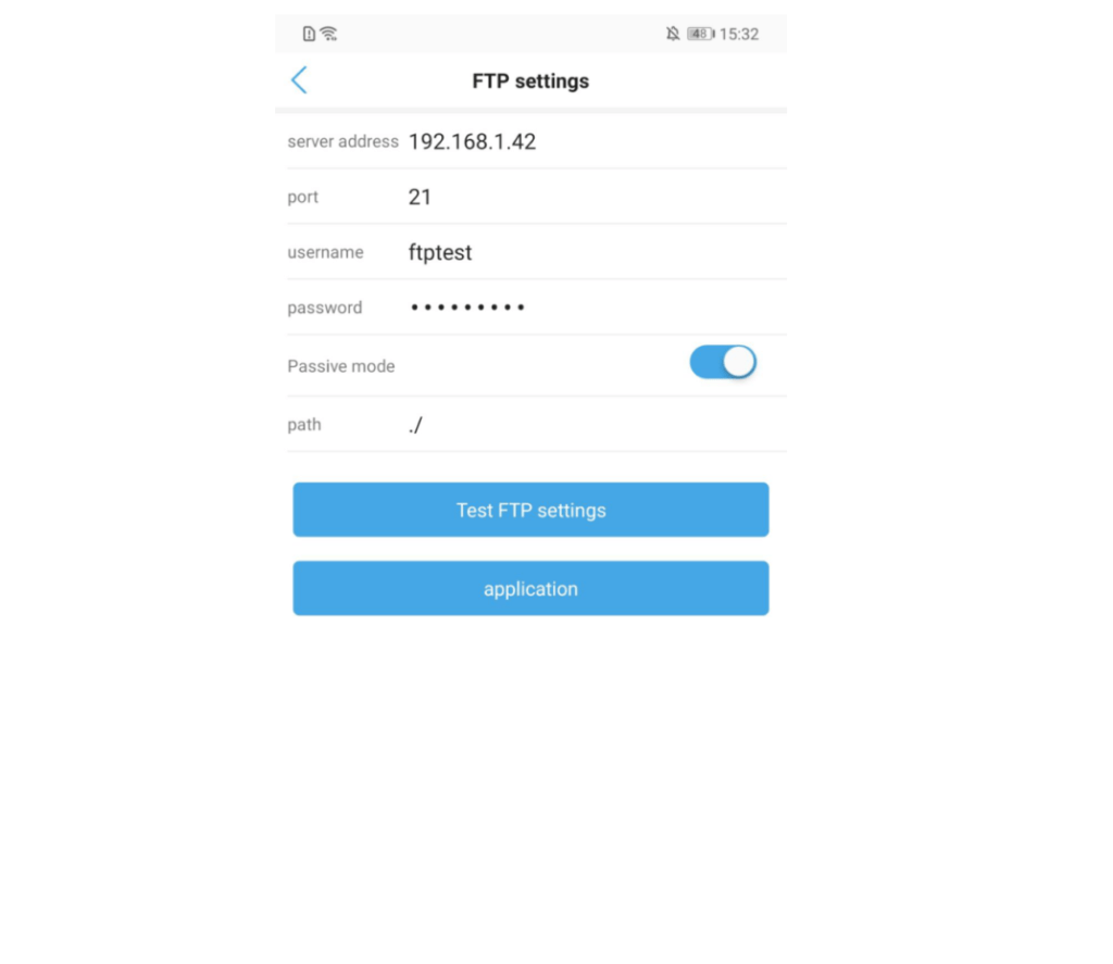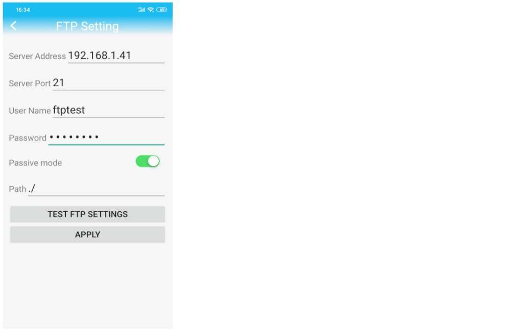 After filling in, click the Apply button, then click the Test button to check if you can send an alarm picture to FTP.