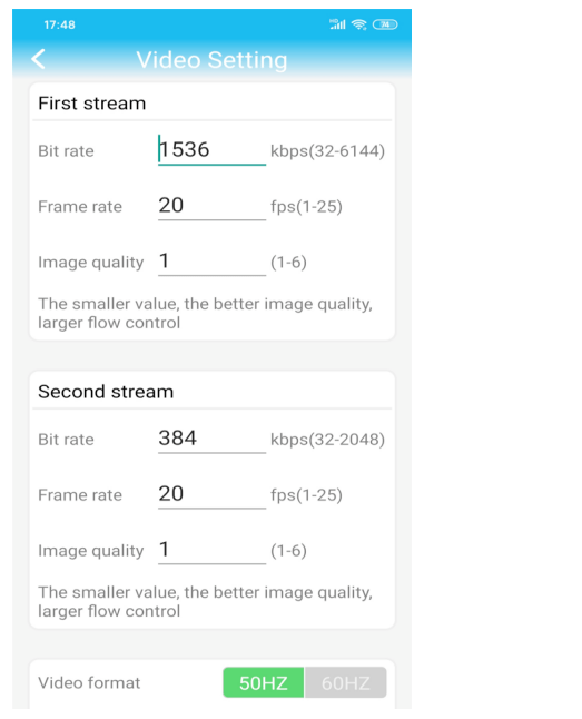 1-6 can be set, the smaller the value, the better the image level, the larger the code stream