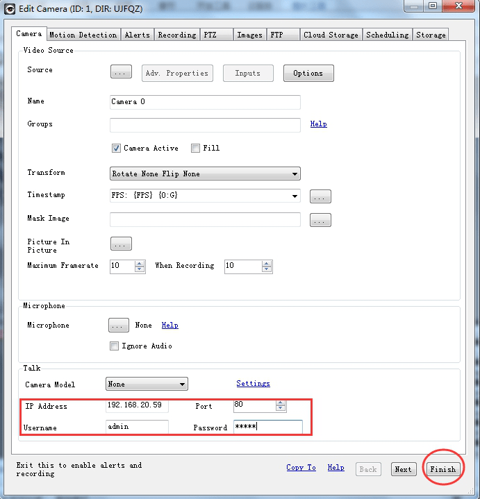 Input your camera ip address, User name and Password, click “Finish”, add camera succeed.
