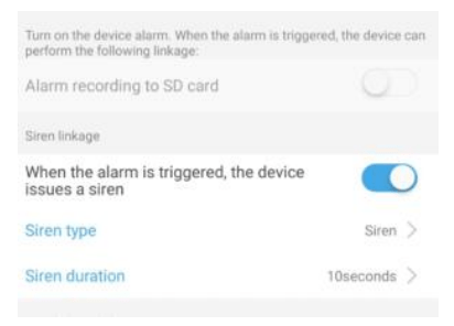 Select on to indicate that when alarming the camera will sound an alarm. Siren type and the duration of the siren is optional