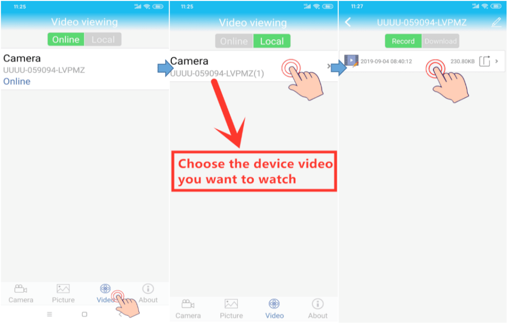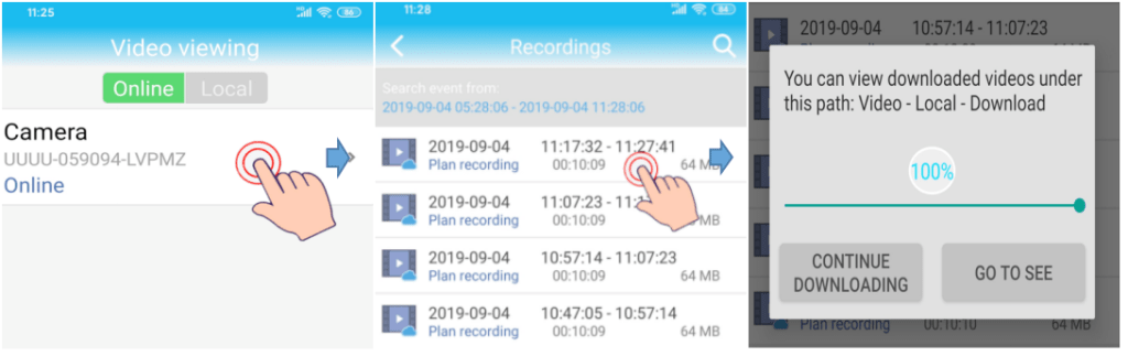 ⑴ Click the sliding screen on the real-time watching interface to control the camera rotation.