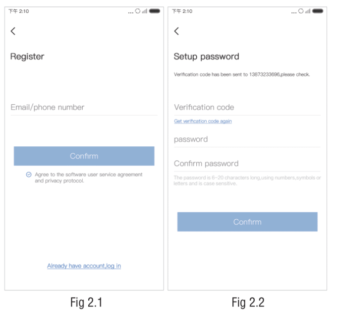 Account log-in: At the log-in interface, input your user name/cellphone number/e-mailaddress and password, click “Confirm,” and log in.