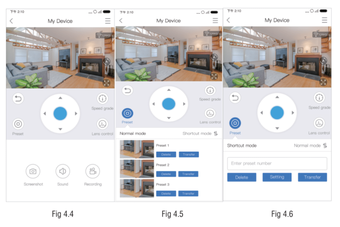 (1) Click the preset button to display the preset position below the interface(Figure 4.5), you can add, recall, and delete preset positions; preset positions are divided into normal mode (Figure 4.5) and shortcut mode (Figure 4.6);