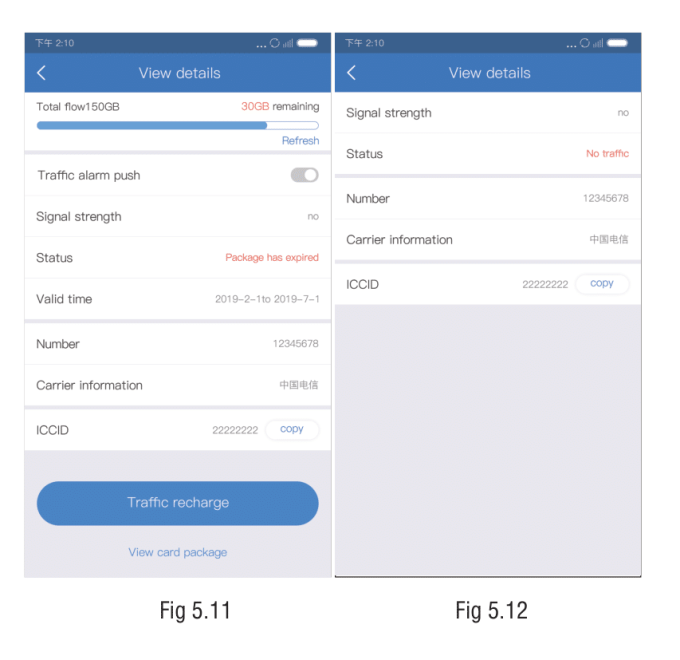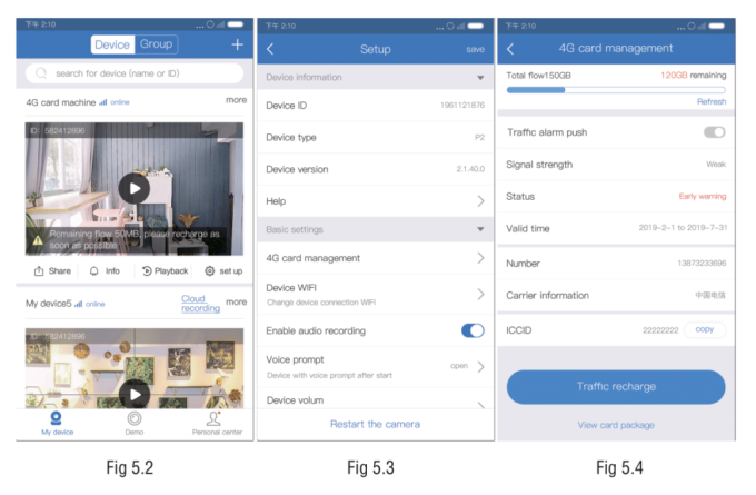 Note: When the camera is plugged into a non-equipment 4G card, it will not support data package recharge, traffic query early warning, and other functions (Figure 5.12).