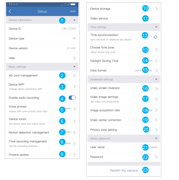 Note: The function in the list will be displayed only if the camera hardware supports it. If the camera does not support a function in the list, the APP will hide the function setting item.