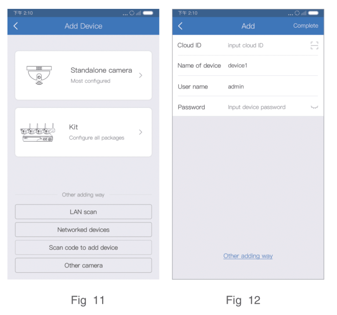 (2). Open the EseeCloud App, enter the QR code scanning interface, and click ” Other Ways to Add ” (Figure 3.13);